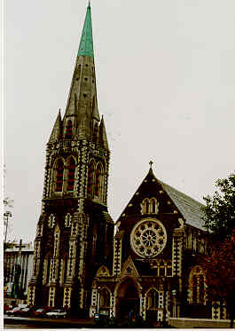 Anhand dieser Kirche in Christchurch sieht man, daß Neuseeland von den Engländern kolonisiert wurde. Mit den Engländern kam auch der Sport aus dem Heimatland in die Fremde, z. B. Cricket.